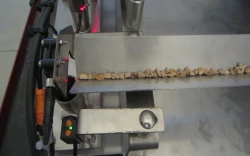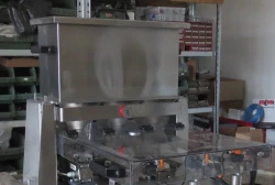 Nella versione con bilancella il controllo del dosaggio è per somma di peso: allo start dosaggio il sistema azzera il peso in bilancia (tara) e ne segue il l’incremento progressivo. Il dosaggio termina una volta raggiunta la quantità impostata. La bilancella è posizionata direttamente sotto lo scarico del dosatore ed è facilmente smontabile dal supporto che la ospita. La bilancella è dotata di una clapè di scarico ad azionamento elettro-pneumatico. Il prodotto in caduta dalla bilancella passa attraverso un collettore conico di scarico che lo guida dentro al contenitore da riempire. A dosaggio terminato la clapè si apre abilitata dal sensore di ottico di presenza contenitore installato sulla linea. Con questo allestimento è possibile ottenere precisioni anche di +/- 1 grammo.